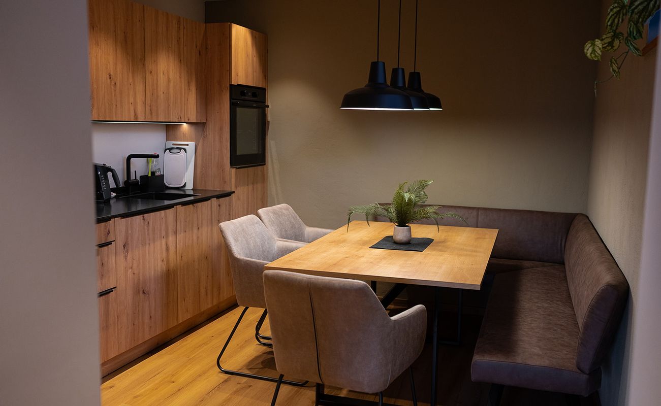 Diese Wohnung wurde als stimmiges Gesamtkonzept eingerichtet, mit viel Gespür für Materialien, Proportionen und Atmosphäre. Ländlicher Charme trifft hier auf moderne Klarheit und schafft eine Wohnwelt, die Geborgenheit und Stil harmonisch vereint.